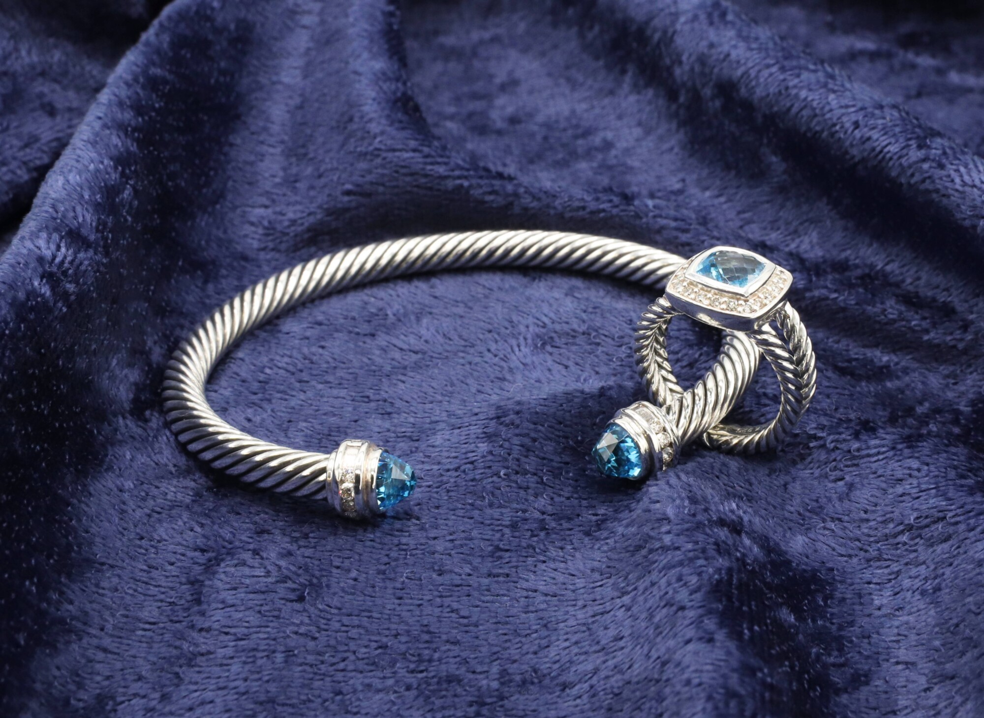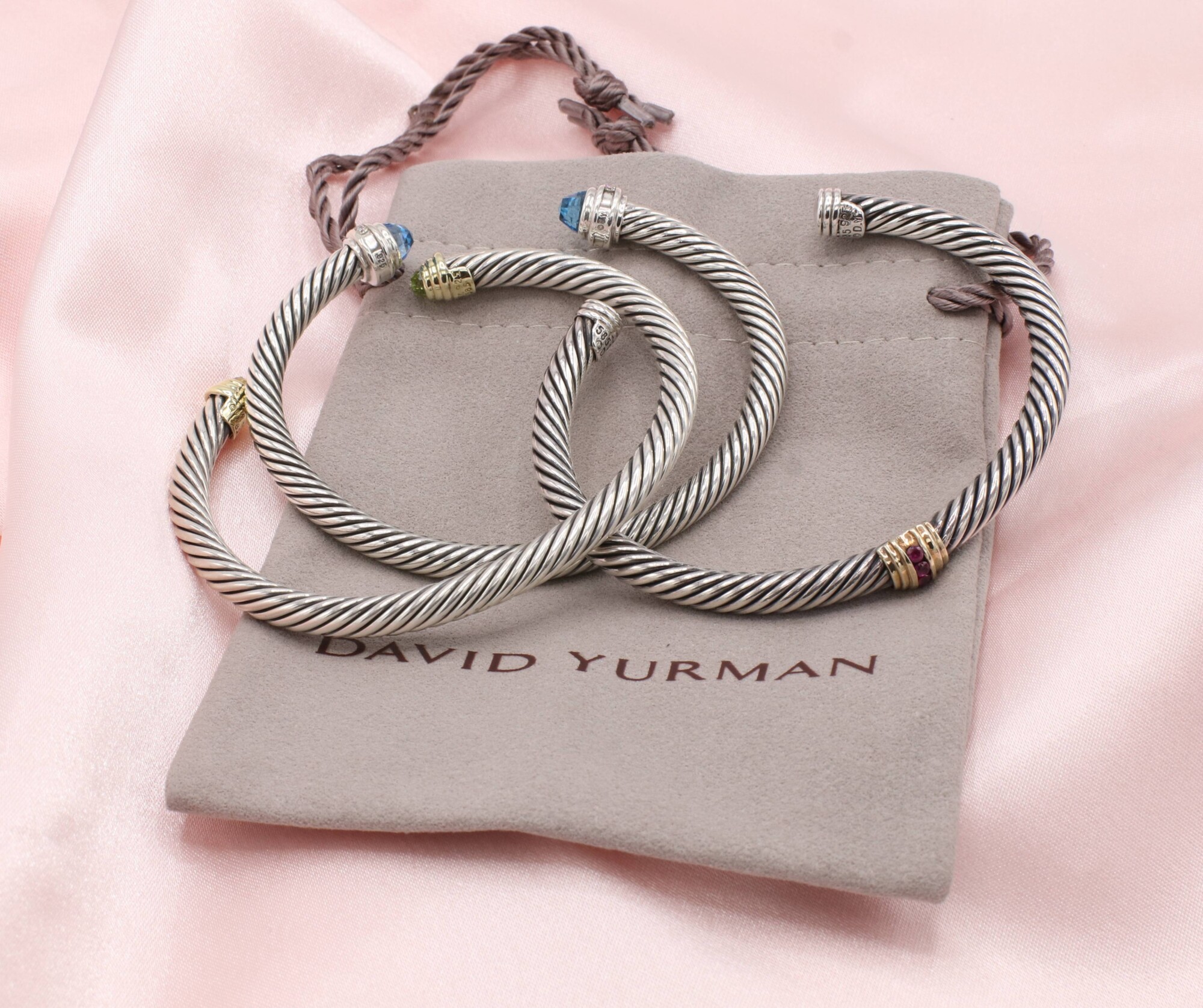 The cornerstone of the David Yurman brand is the Classic Cable bracelet – instantly recognizable for its twisted helix motif that resembles a beautiful rope pattern. These pieces typically feature: