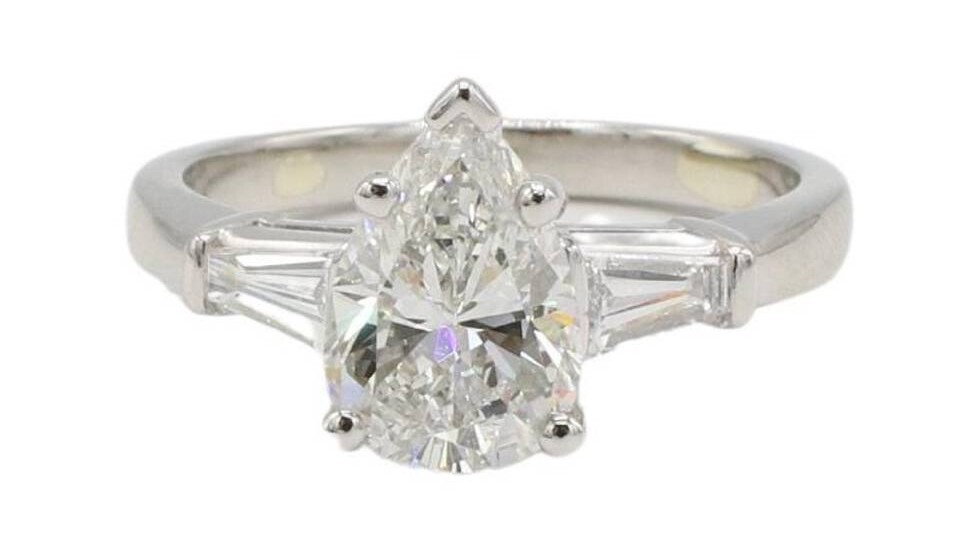 GIA Certified 1.72 Carat G SI1 Pear Shape Natural Diamond Platinum Engagement Ring