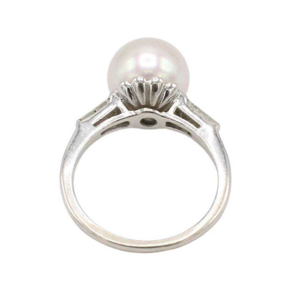 14 Karat White Gold Akoya Cultured Pearl & Natural Diamond Cocktail Ring