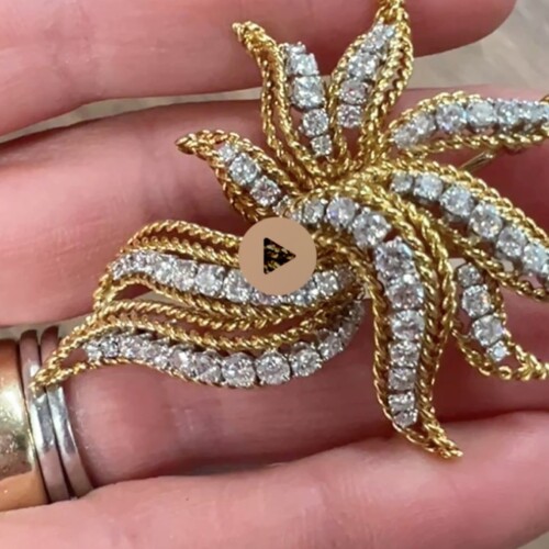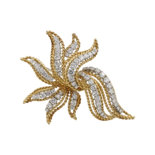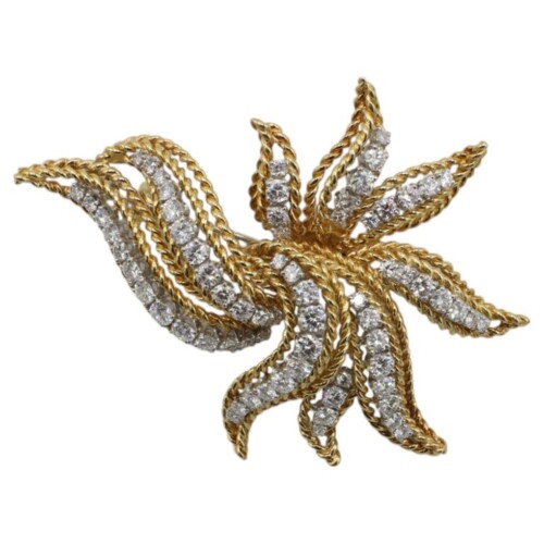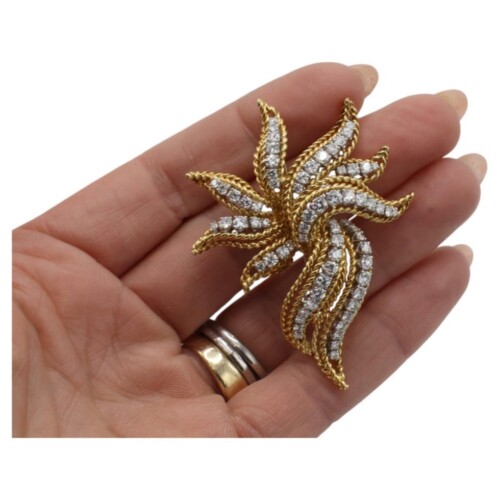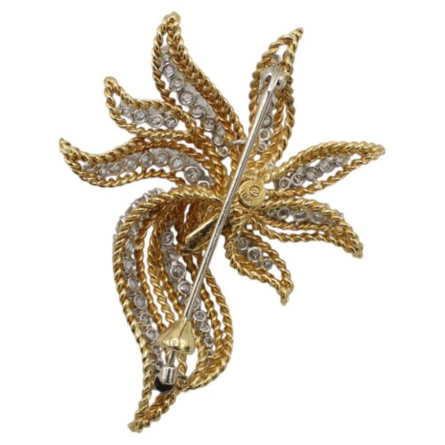 18 Karat Yellow Gold 4.00 Carat Natural Diamond Rope Leaf Pin Brooch