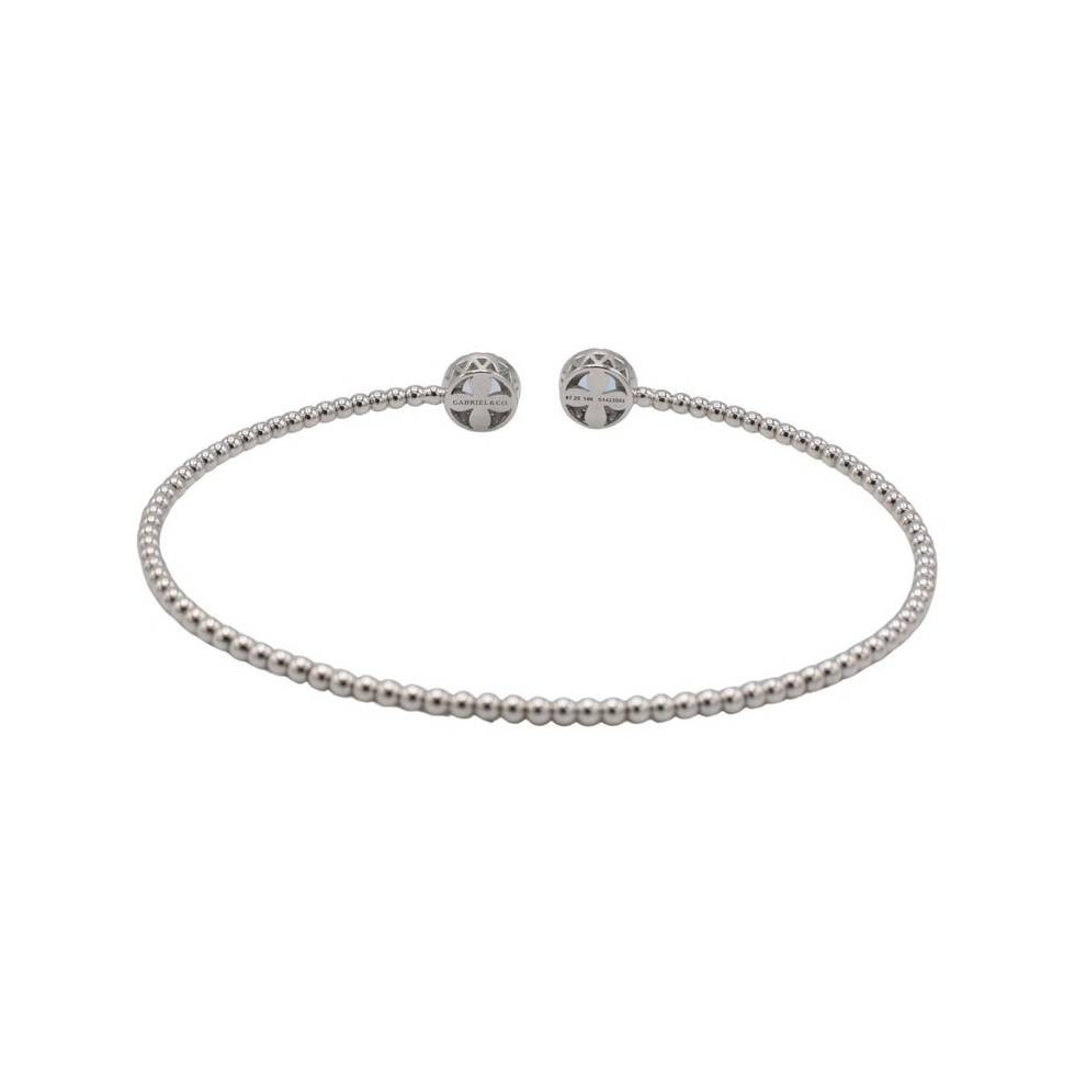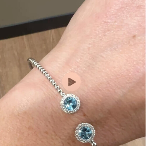 From the Bujukan collection, this 14K white gold bangle features a central blue topaz flanked by 0.16 carats of G-H VS-SI diamonds. Its unique beaded texture and split-top design offer a contemporary take on the classic diamond bracelet.