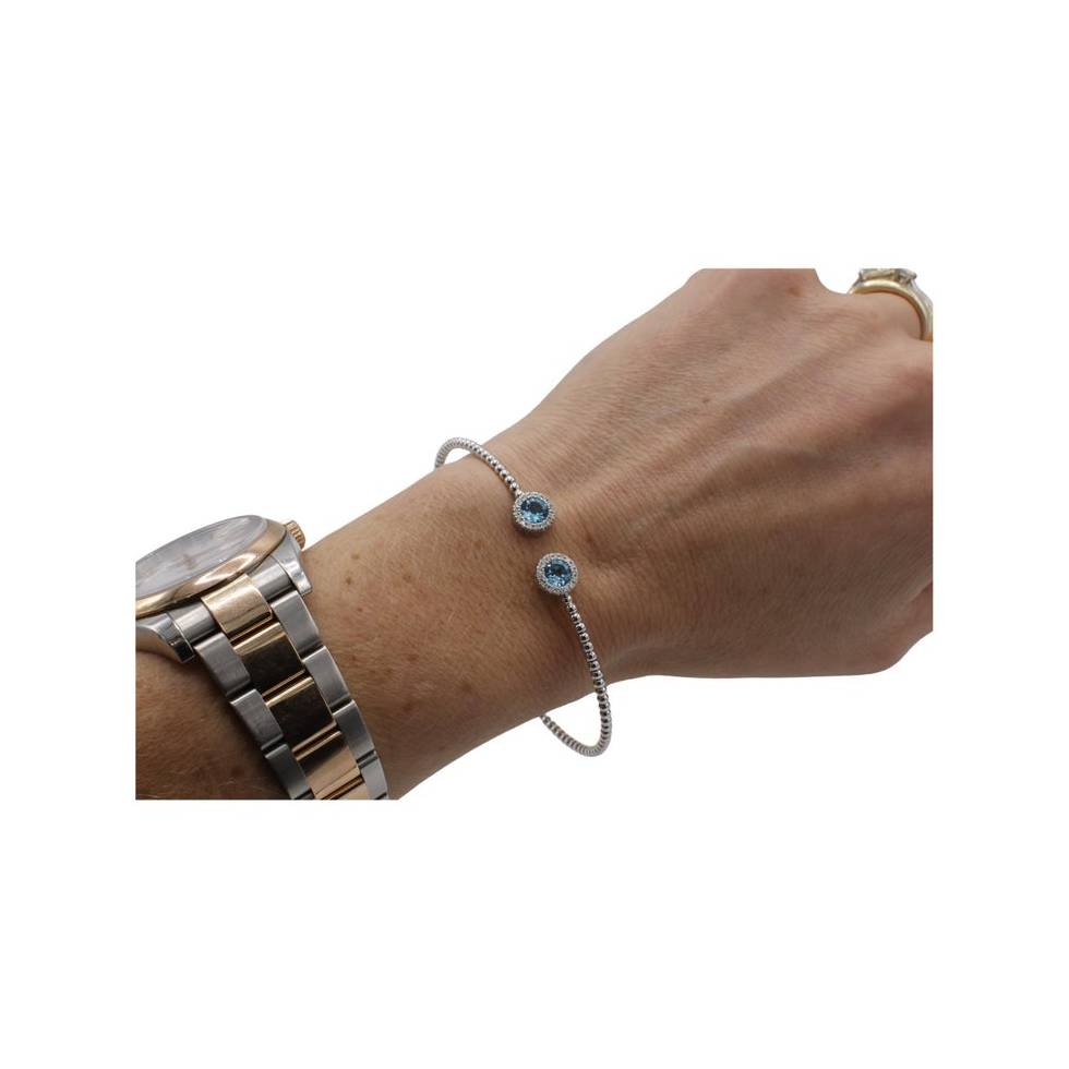 Gabriel & Co. Bujukan White Gold Blue Topaz & Natural Diamond Bangle Bracelet
