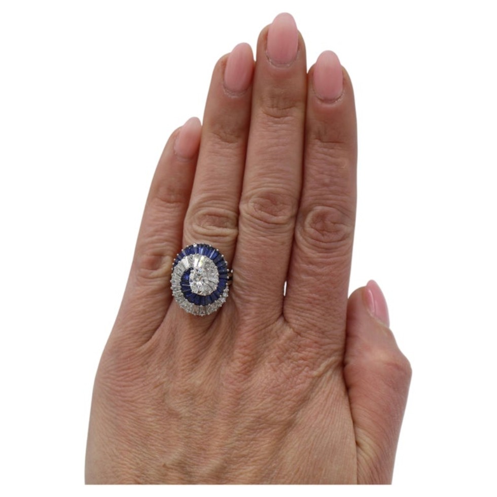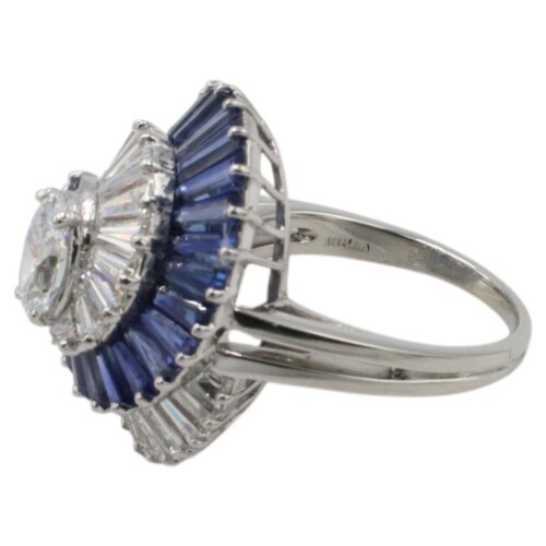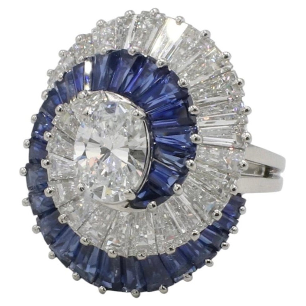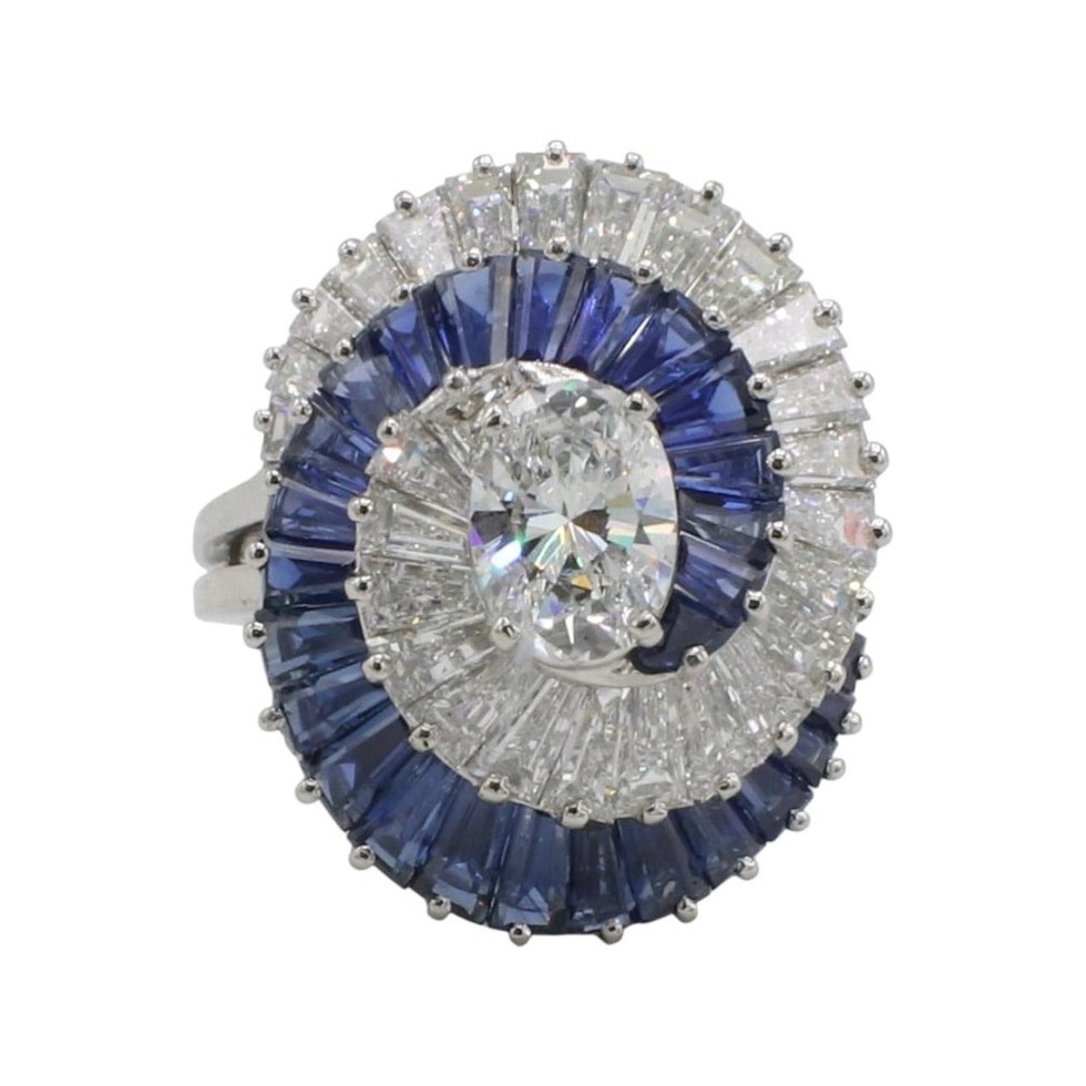 Oscar Heyman Brothers (OHB) Natural Diamond & Blue Sapphire Swirl Dome Cocktail Ring