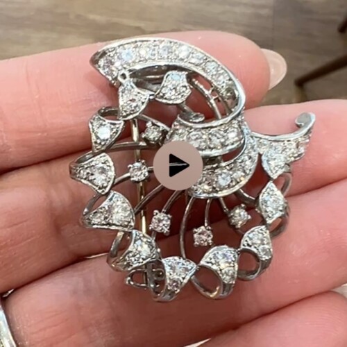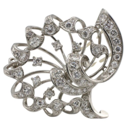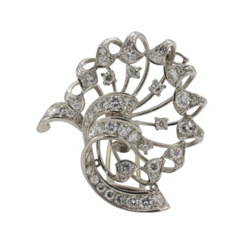 Patek Philippe 18 Karat White Gold Natural Diamond Brooch Pin