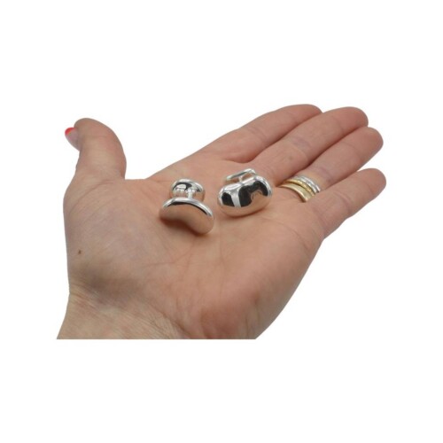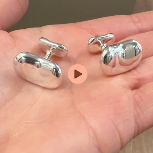These authentic Elsa Peretti French cufflinks feature the iconic “Bean” motif in oversized 21mm sterling silver. Weighing a substantial 27.6 grams, they represent a fusion of organic form and sophisticated menswear style.