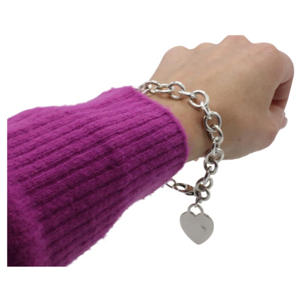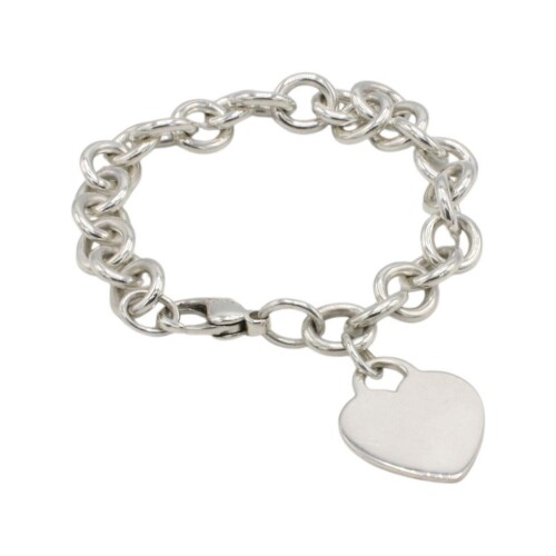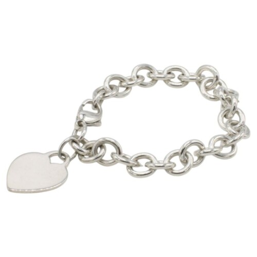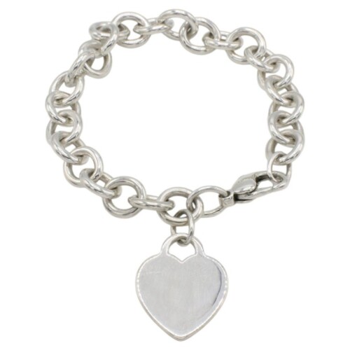 Tiffany & Co. Sterling Silver Heart Charm Tag Link Bracelet