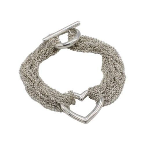 Tiffany & Co. Sterling Silver Multi-Strand Mesh Open Heart Toggle Bracelet