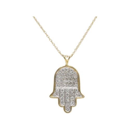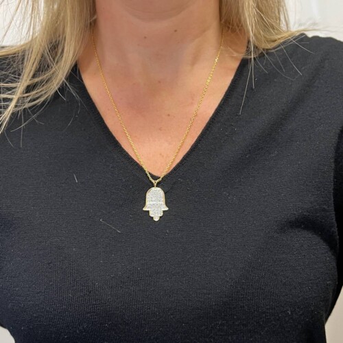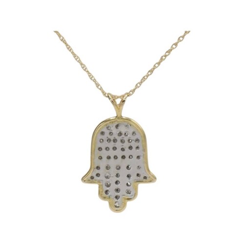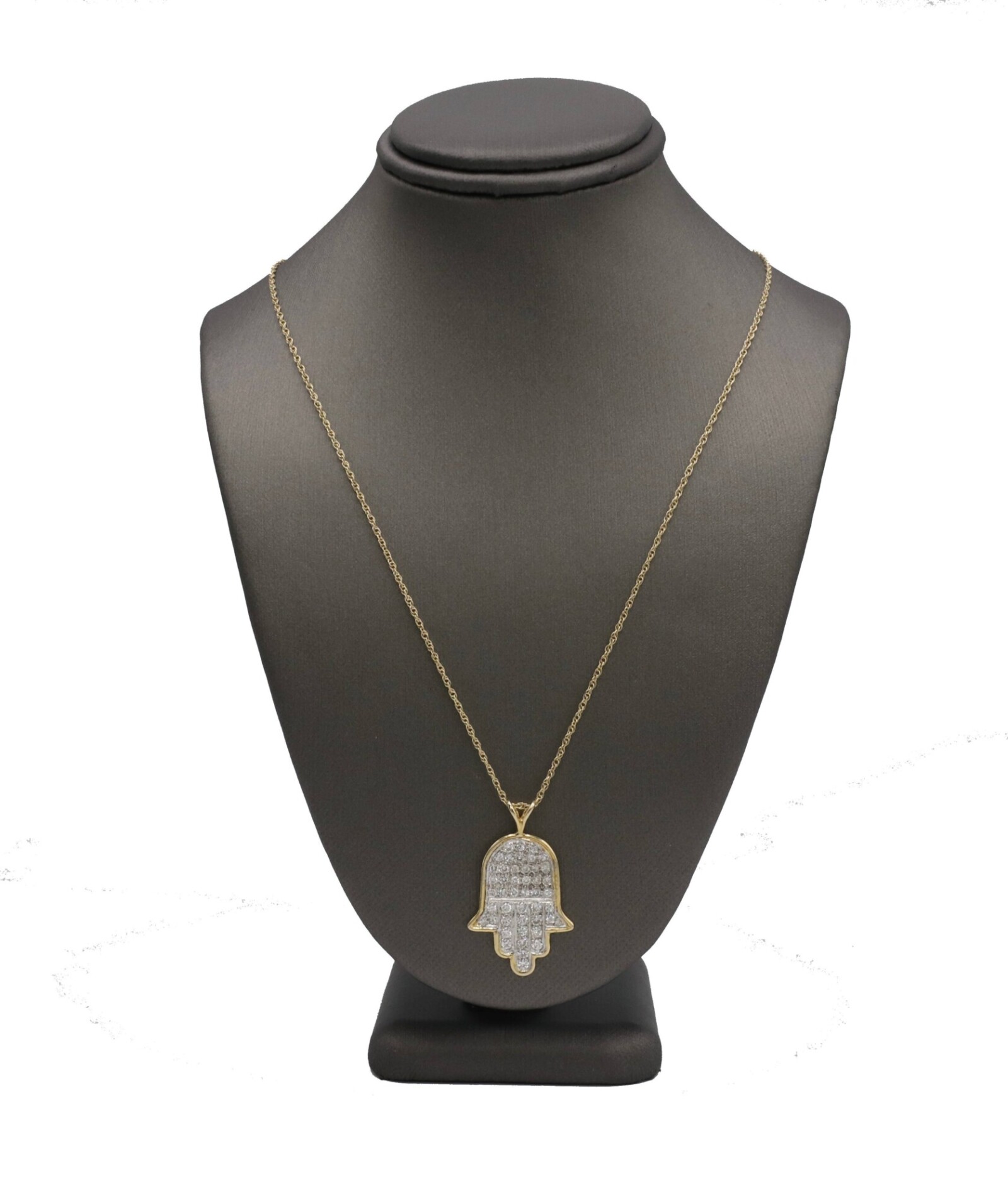 Yellow Gold & Natural Diamond Hand Hamsa Pendant Necklace